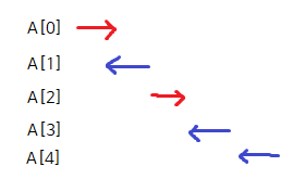 위의 그림처럼 A[0] = 0 A[1] = 1 A[2] = 0 A[3] = 1 A[4] = 1일때, 차가 만나는 경우(쌍)은 각각
