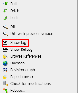 먼저 상위 브랜치로 체크아웃하고, Show Log로 들어간다.