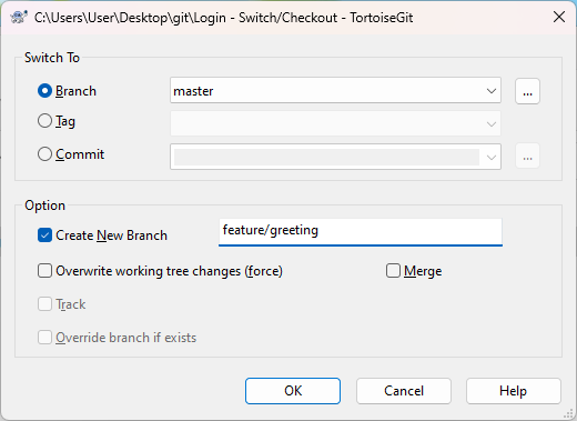 TortoiseGit > Switch/Checkout 으로 들어갑니다.