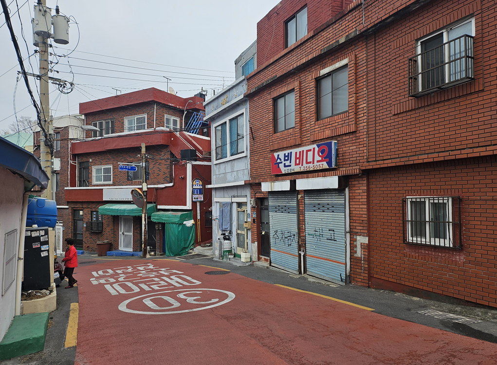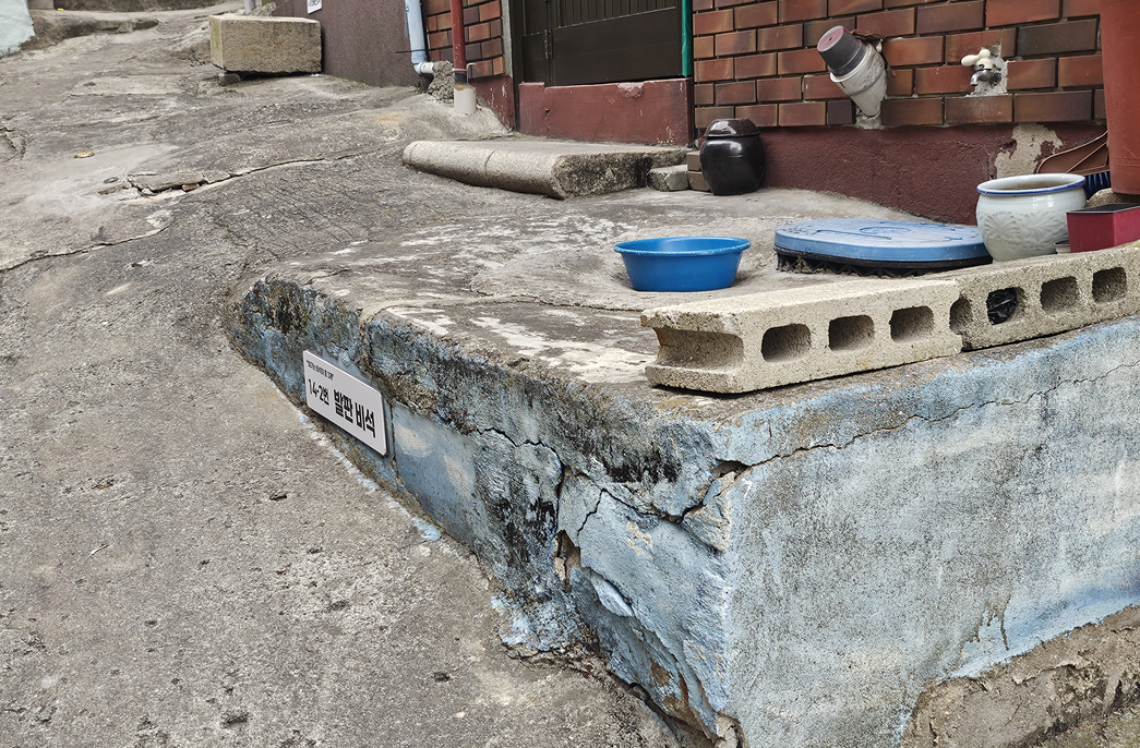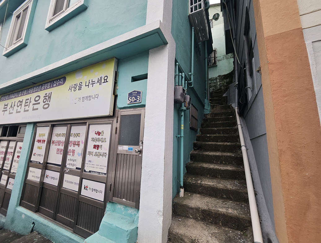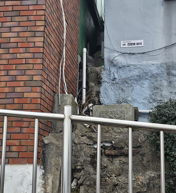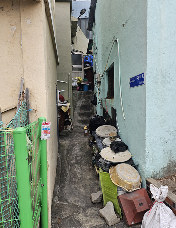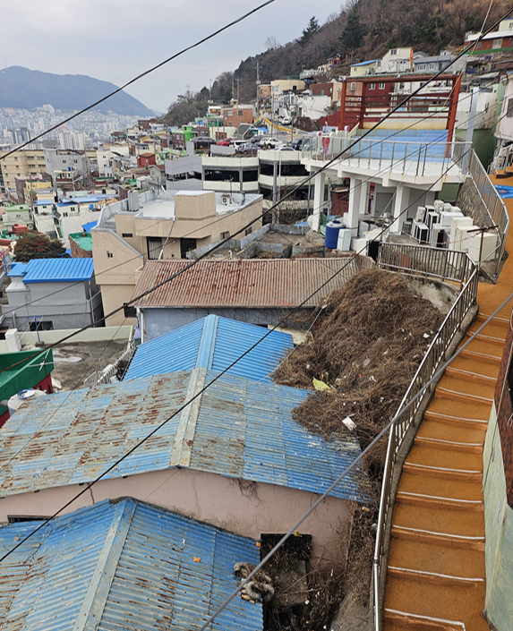 달동네는 굉장히 좁고 가파른 계단을 가지고 있다.