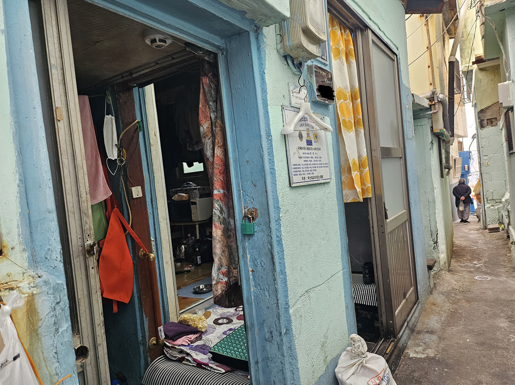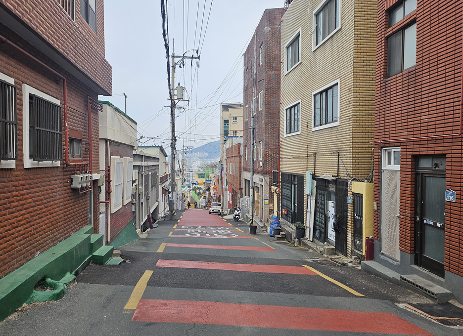 가옥 표면엔 밝은 색 페인트가 칠해져 있어서 감천문화마을의 집들과 크게 다르지 않다.
