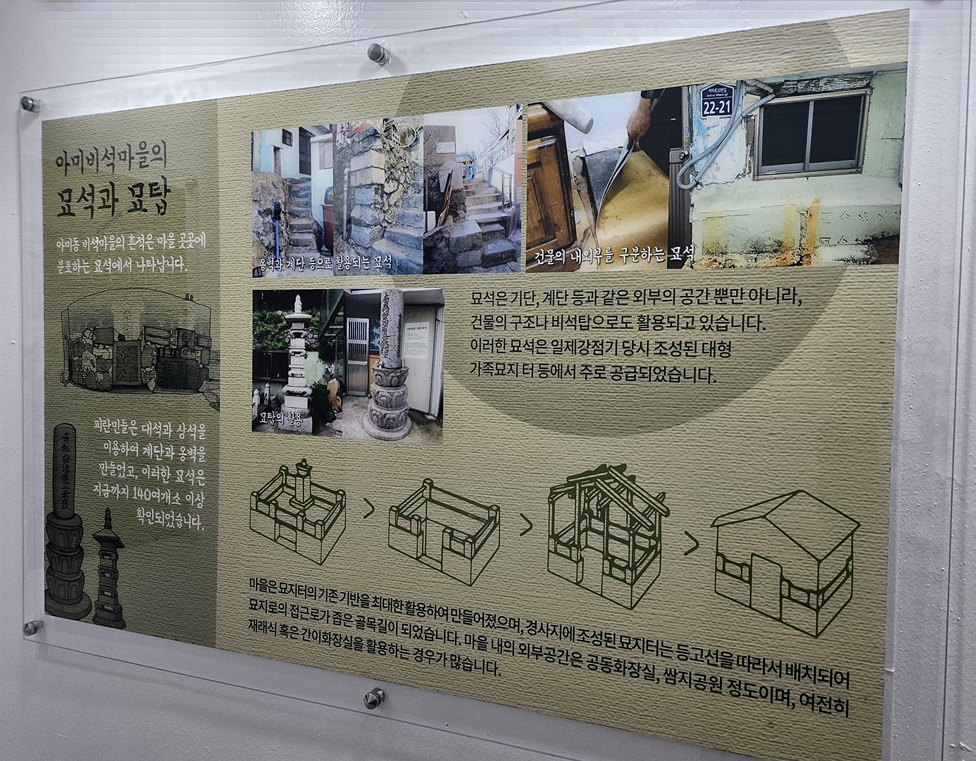 비석마을은 일본인들의 공동묘지 위에 지어진 만큼 비석이 많은데, 비석마다 이름이 붙어 있다.