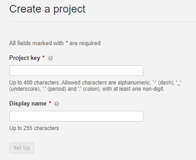 (2) Project key (나중에 환경 변수로 쓰임)와 SonarQube에 보여질 이름 결정