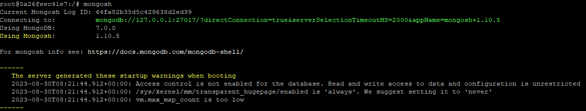 컨테이너 내부에서 mongosh 를 입력하면 MongoDB를 사용할 수 있게 됩니다.