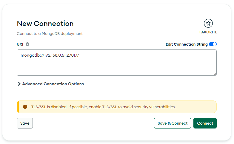 MongoDB가 설치된 서버의 URI를 입력하고 Connect를 누르면 연결됩니다.