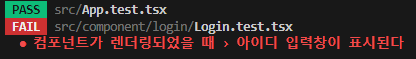 TDD가 늘 그렇듯 빈 Login 컴포넌트를 만들어 놓고 given-when-then 패턴으로 테스트 코드 먼저 작성합니다.